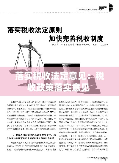 税收法定原则是现代法治国家的基本原则之一,它要求税收法律法规必须明确、稳定,且经过法定程序制定。近年来,我国在税收立法方面取得了显著进展,但仍然存在一些问题,如税收法律法规不够完善、税收执法不规范等。为此,落实税收法定意见,对于推进依法治国、保障国家财政收入、维护纳税人合法权益具有重要意义。
