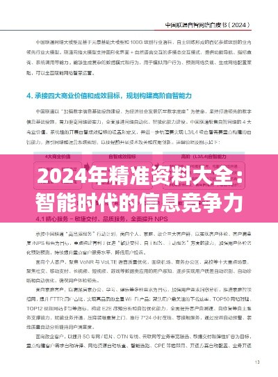 随着人工智能、大数据、云计算等技术的深入应用,我们目睹了信息处理方式和传播渠道的根本性变化。智能时代的信息竞争不仅仅限于获取和分发信息的速度和数量,更重要的是其精细化和精确度。2024年精准资料大全为我们提供了深入这一全新竞争领域的必备工具和策略。