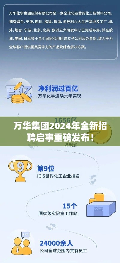 随着全球经济的不断发展和技术的日新月异,万华集团正迎来新的发展机遇,为满足公司扩张和业务发展的需求,万华集团将于2024年展开一系列最新招聘活动,诚邀海内外优秀人才加入我们的团队,共同开创美好未来。