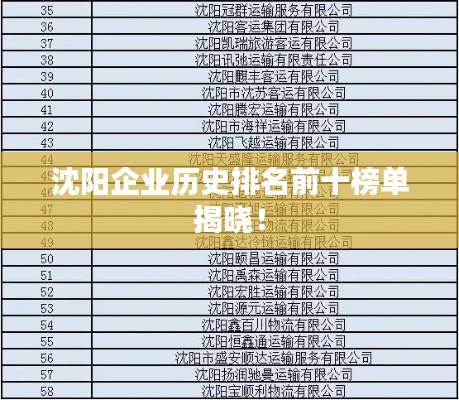 沈阳,作为东北地区的经济中心之一,拥有着丰富的历史和文化底蕴,在这片热土上,众多企业在岁月的长河中崭露头角,成为了行业的佼佼者,以下是沈阳企业历史排名前十名,它们的发展历程和成就,见证了沈阳的辉煌与繁荣。