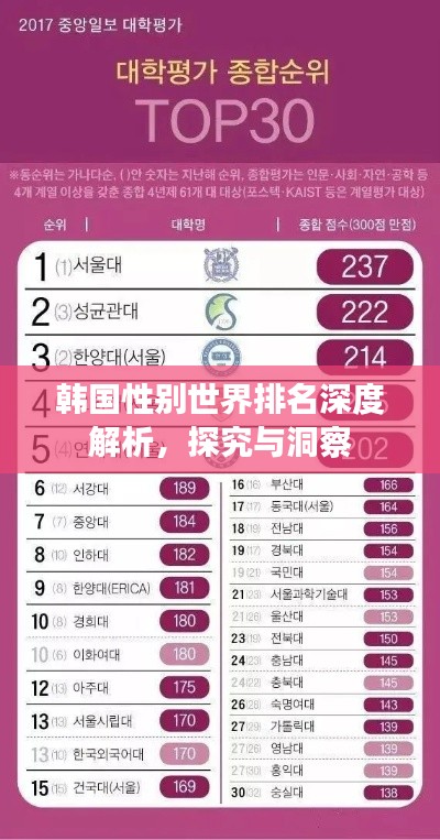 在全球化的今天,韩国的性别排名问题逐渐引起了人们的广泛关注,这种关注并非空穴来风,而是基于韩国在性别平等领域的实际状况和发展趋势,本文将探讨韩国的性别世界排名背后的因素,以及这一现象对韩国社会产生的影响。