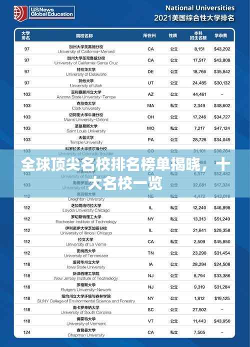 美国在高等教育领域一直处于领先地位,其十大名校包括斯坦福大学、麻省理工学院、哈佛大学等世界著名学府,这些学校以其卓越的科研实力、教学质量和学术声誉而闻名于世。