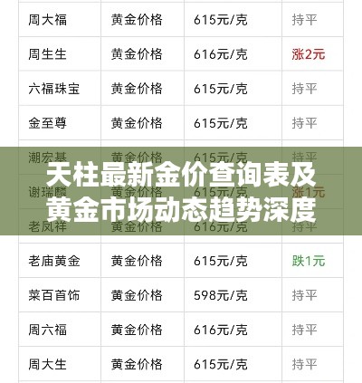 随着全球经济形势的波动,黄金市场的动态变化日益受到人们的关注,本文将围绕“天柱今日金价查询表最新”这一主题,为您详细解读当前黄金市场的最新动态、价格趋势以及影响因素。