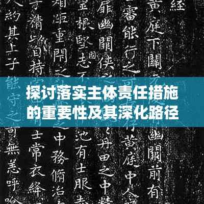 在当今社会,随着经济的快速发展和社会的进步,各类组织面临着日益复杂的挑战和机遇,为了保障组织的稳健发展,落实主体责任措施已成为一项至关重要的任务,本文将围绕“落实主体责任措施6”这一主题展开讨论,旨在阐述其重要性、实施策略及实践路径。