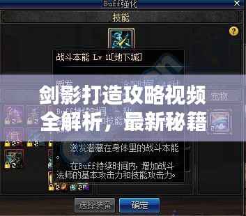 剑影打造是指通过一系列方法和技巧,对游戏中的剑影装备进行升级、强化和改造,从而提高角色属性和战斗力,随着游戏版本的更新,剑影打造的途径和方式也在不断变化,了解最新的攻略视频对于玩家来说至关重要。