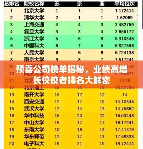 随着全球经济的复苏和行业的蓬勃发展,预喜公司的业绩持续增长,成为投资者关注的焦点,本文将对预喜公司进行排名,揭示业绩增长的佼佼者,为投资者提供有价值的参考。