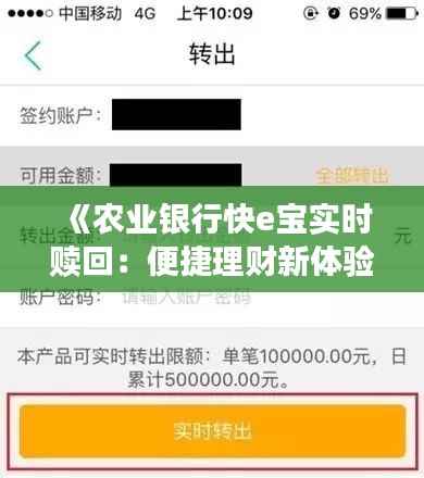 标题:《农业银行快e宝实时赎回:便捷理财新体验》