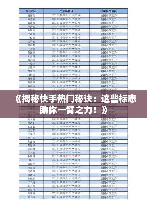 标题:《揭秘快手热门秘诀:这些标志助你一臂之力!》
