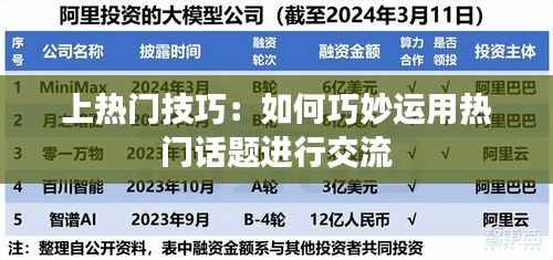 标题:上热门技巧:如何巧妙运用热门话题进行交流