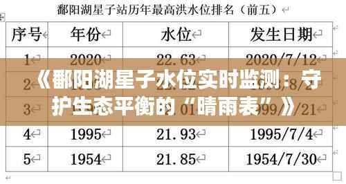 标题:《鄱阳湖星子水位实时监测:守护生态平衡的“晴雨表”》
